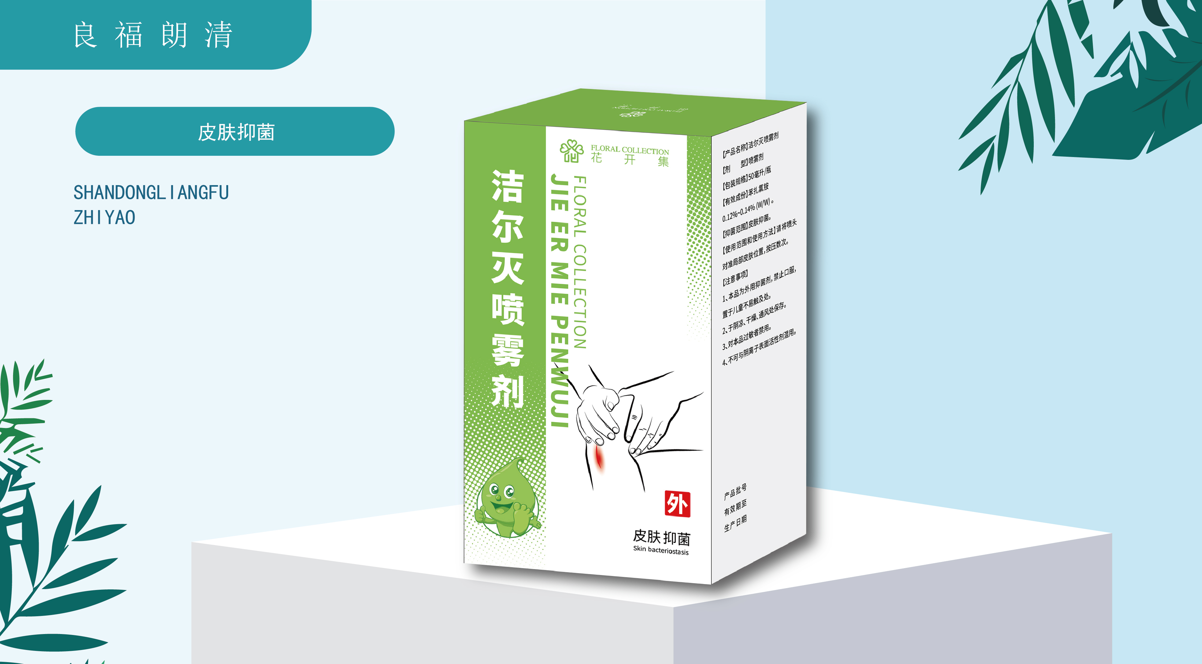 皮肤抑菌。将喷头对准局部皮肤位置,按压数次。