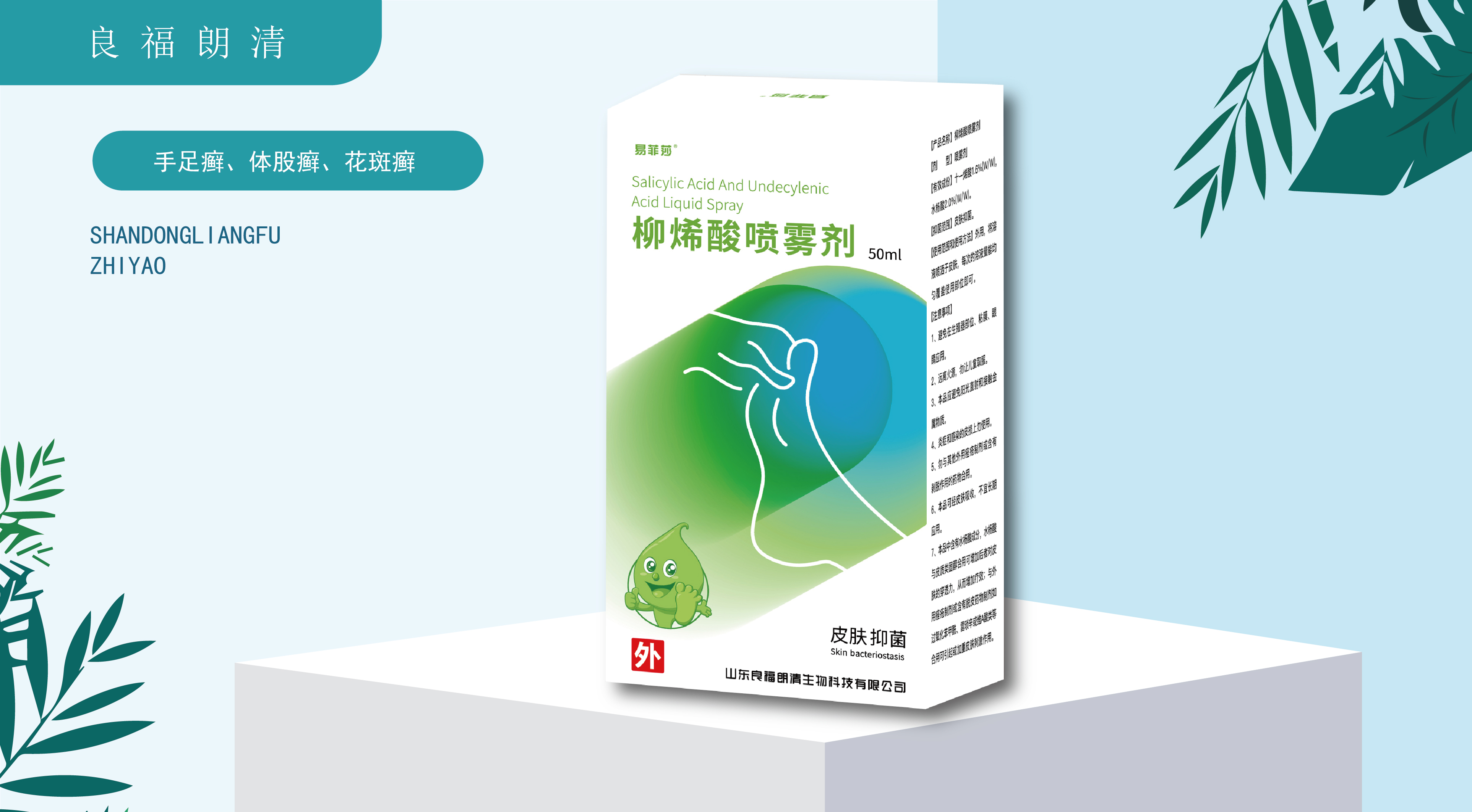 适用于手足癣、体股癣、花斑癣。外用,将溶液喷洒于皮肤,每次的溶液量能均匀覆盖使用部位即可。